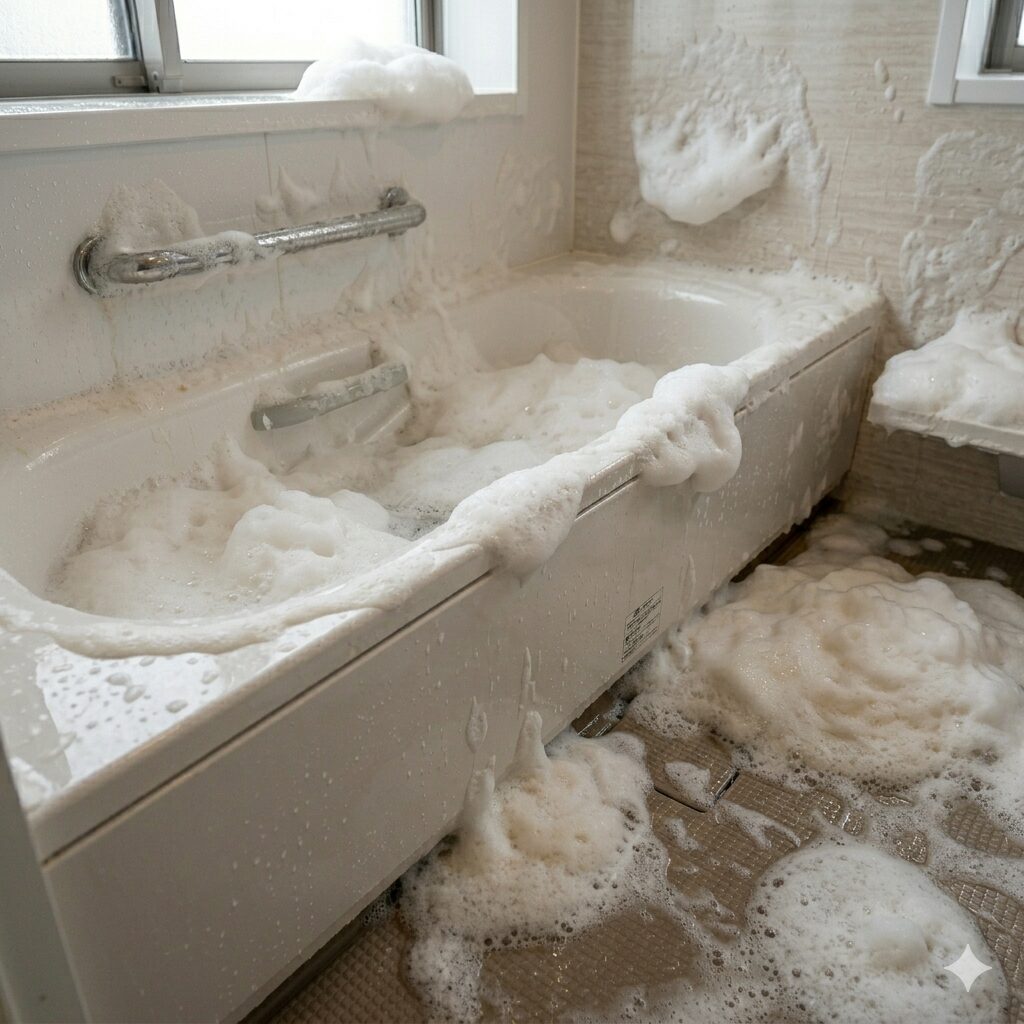 いや、想定以上だった。 車用のフォームガンを浴室で使うと、 “泡の壁”ができるレベルでアワアワになる。